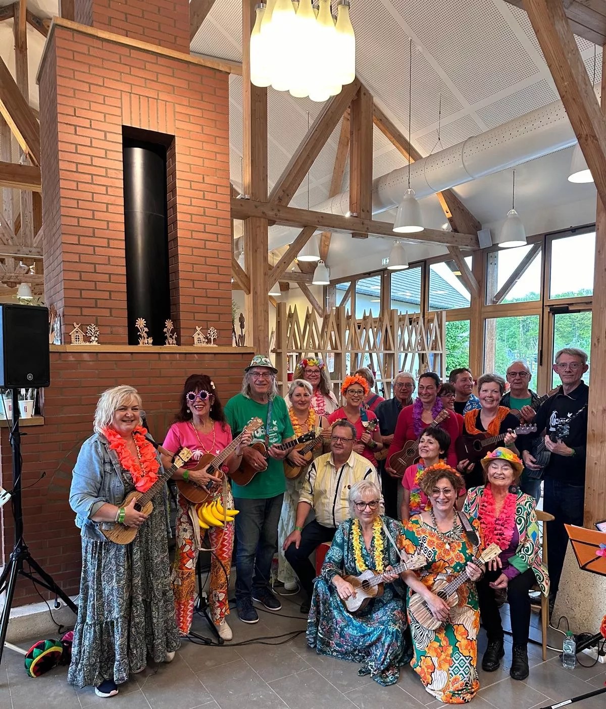 Le Ukulélé Band de Villeneuve Le Comte (UBVLC) joyeux groupe d’amis ukulélistes constitué et reconstitué pour le festival.